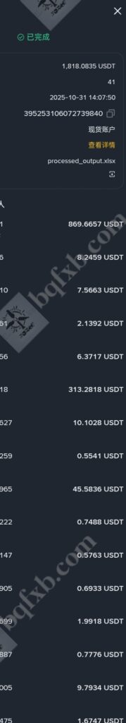 币安返佣-2025.10.31每天返佣更新,今日返佣1818.08u!作者: bqfxb / 2025年10月31日 6.18之后每天返佣记录以单独文章更新在返佣展示,6.18之前的返佣记录在文章返佣信息查询网站 返佣记录展示