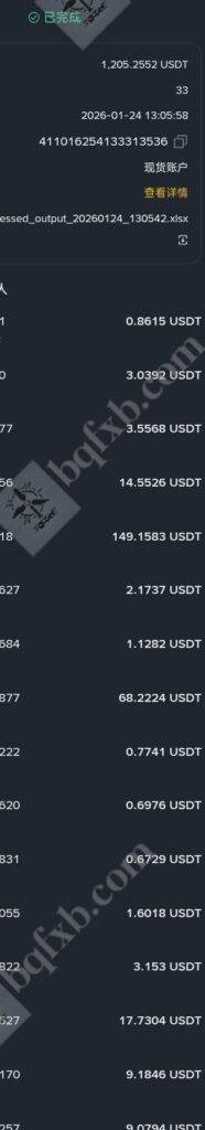 币安返佣-2026.1.24每天返佣更新,今日返佣1205.25u!作者: bqfxb / 2026年1月24日 6.18之后每天返佣记录以单独文章更新在返佣展示,6.18之前的返佣记录在文章返佣信息查询网站 返佣记录展示