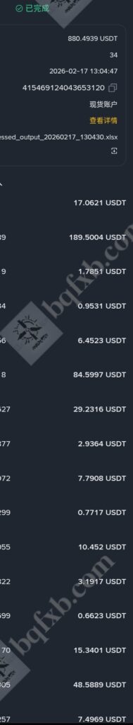 币安返佣-2026.2.17每日返佣更新,今日返佣880.49u!作者: bqfxb / 2026年2月17日 6.18之后每天返佣记录以单独文章更新在返佣展示,6.18之前的返佣记录在文章返佣信息查询网站 返佣记录展示