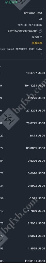 币安返佣-2026.3.26每日返佣更新,今日返佣867.07u!作者: bqfxb / 2026年3月26日 6.18之后每天返佣记录以单独文章更新在返佣展示,6.18之前的返佣记录在文章返佣信息查询网站 返佣记录展示